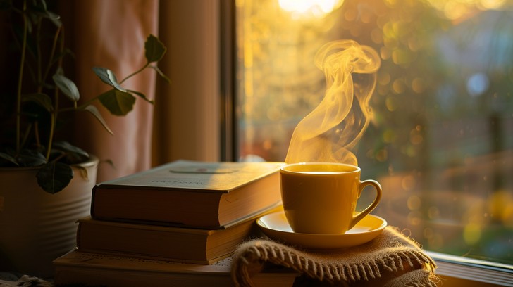 A warm and relaxing story about starting the day, feeding the cat and turning on the kettle.
